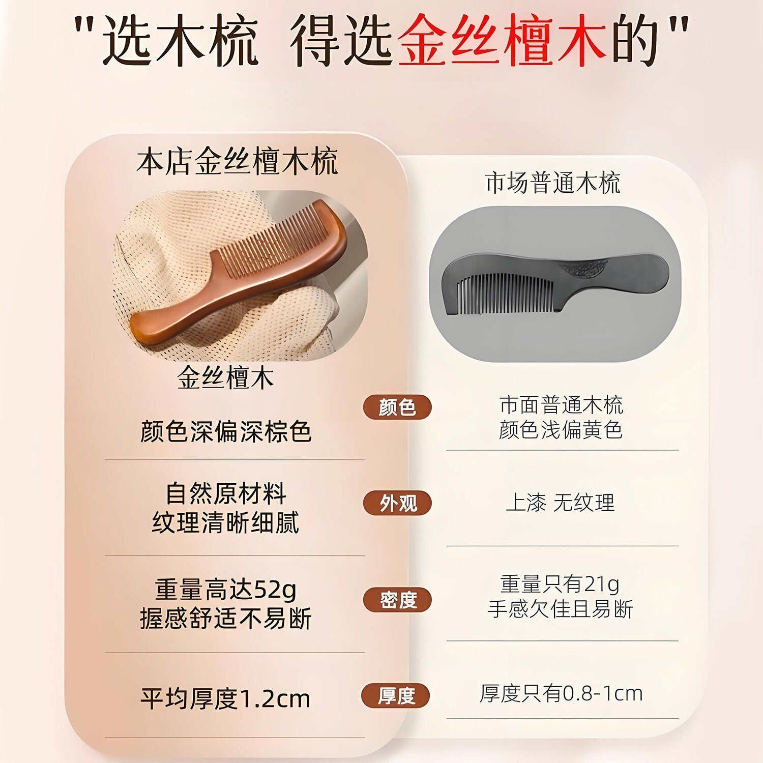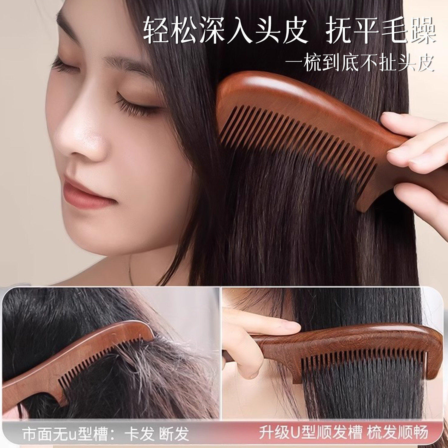檀木梳子防静电男女孩士专家用不伤头发小宽齿细齿梳头按摩不打结