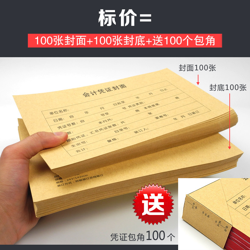 会计凭证封面增票抵扣联通用牛皮纸财务a5记帐凭证装订封皮包角纸