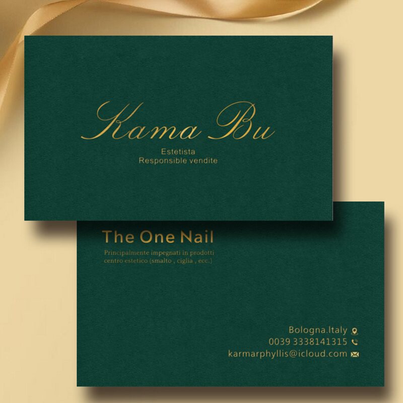 商务创意个性花店美容墨绿色棉纸名片烫金压痕印刷凹凸名片制作