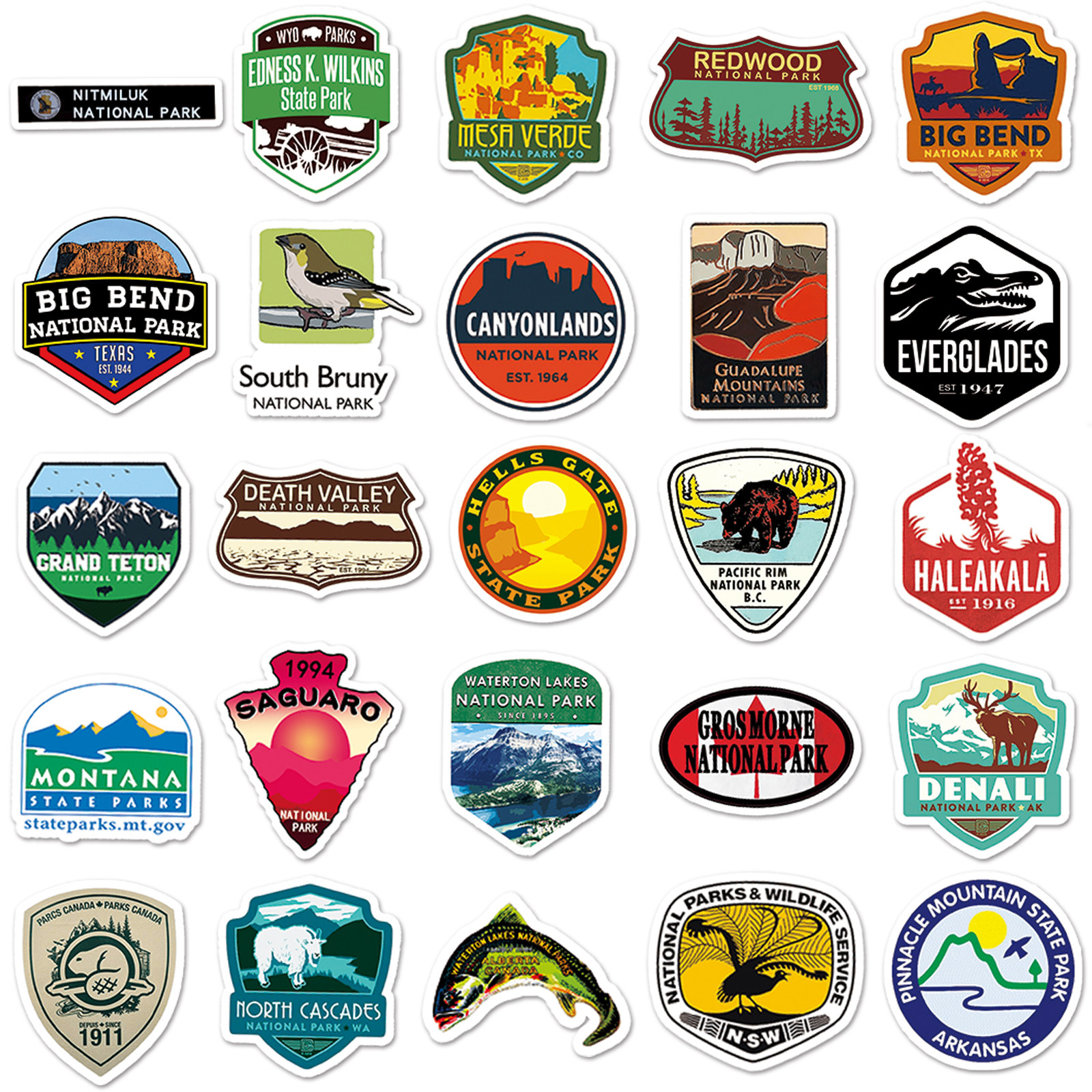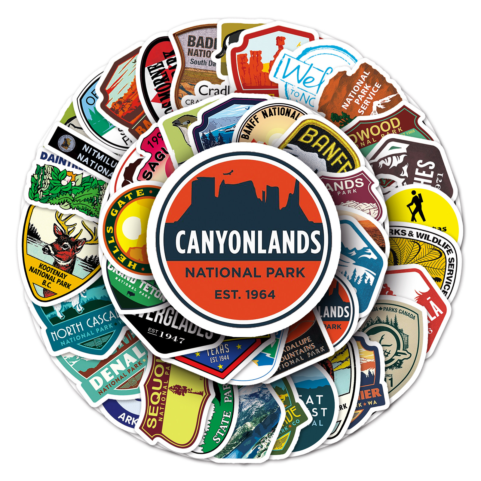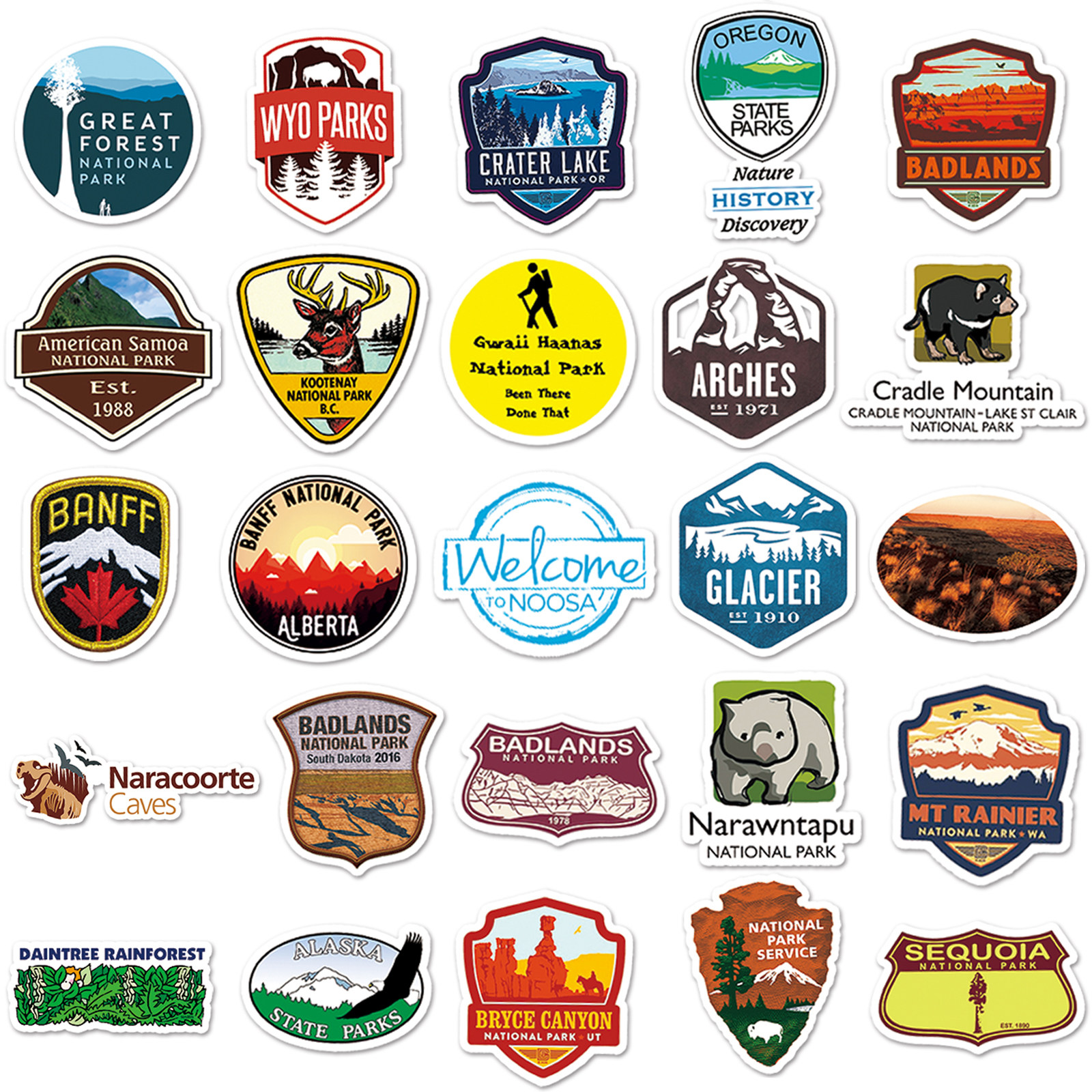 100张国家公园图标贴纸汽车自行车滑板头盔旅行箱冰箱手账装饰卡通可爱防水风景标识标志个性创意涂鸦贴画