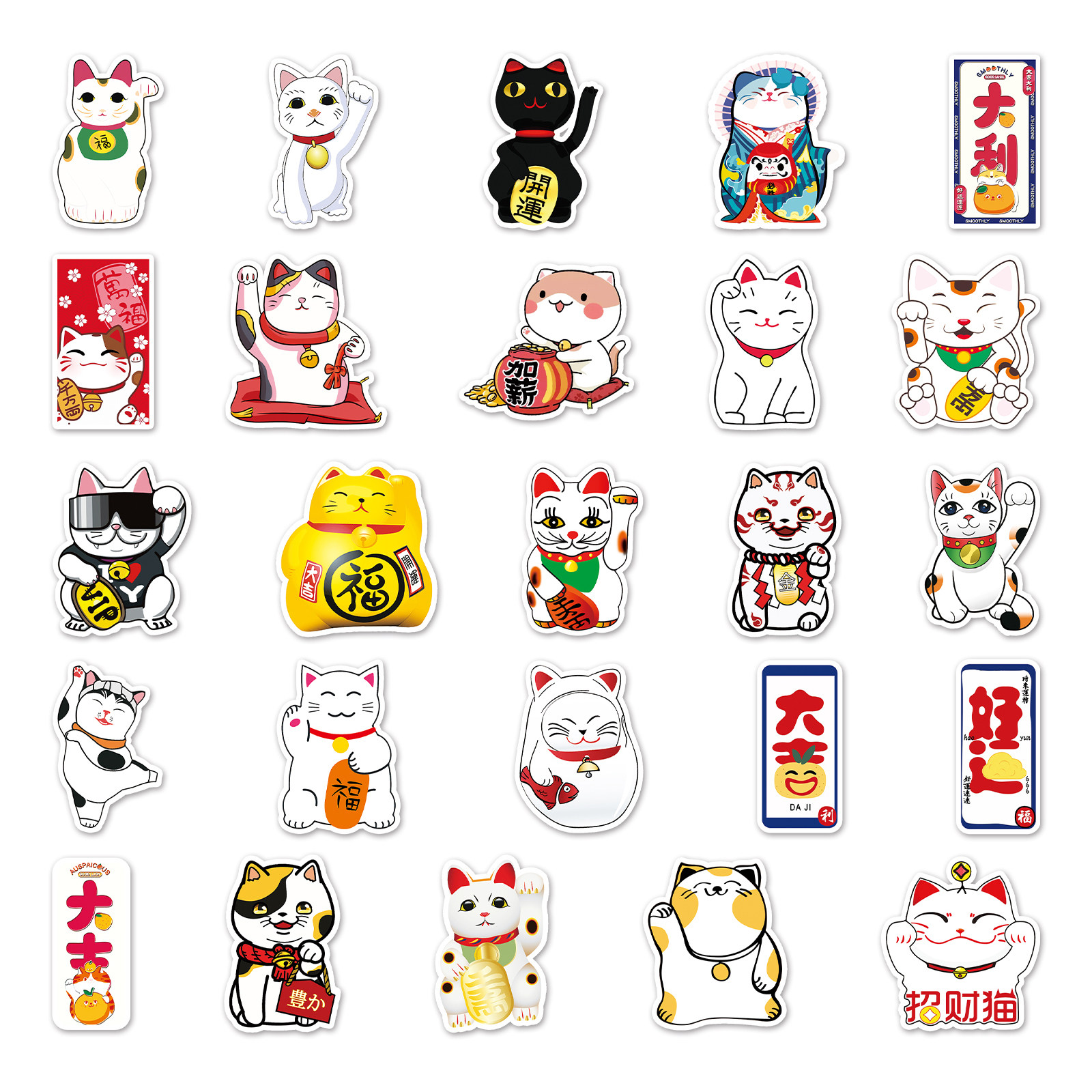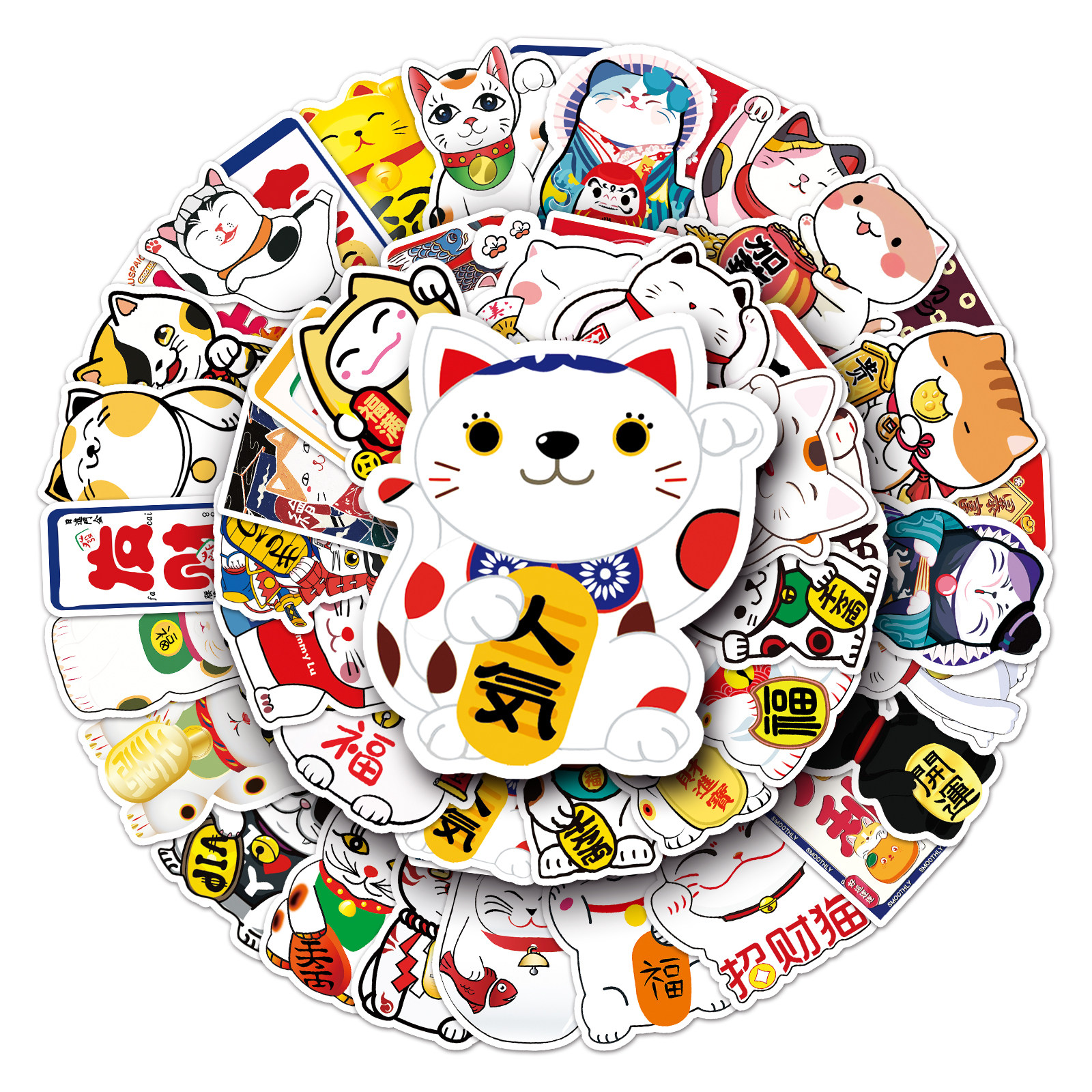 100张发财猫贴纸手机壳笔记本电脑旅行箱汽车头盔自行车滑板装饰卡通可爱招财猫咪热门涂鸦个性创意防水贴画