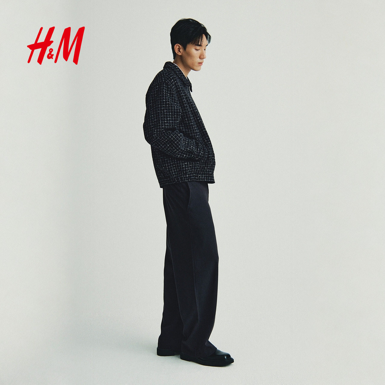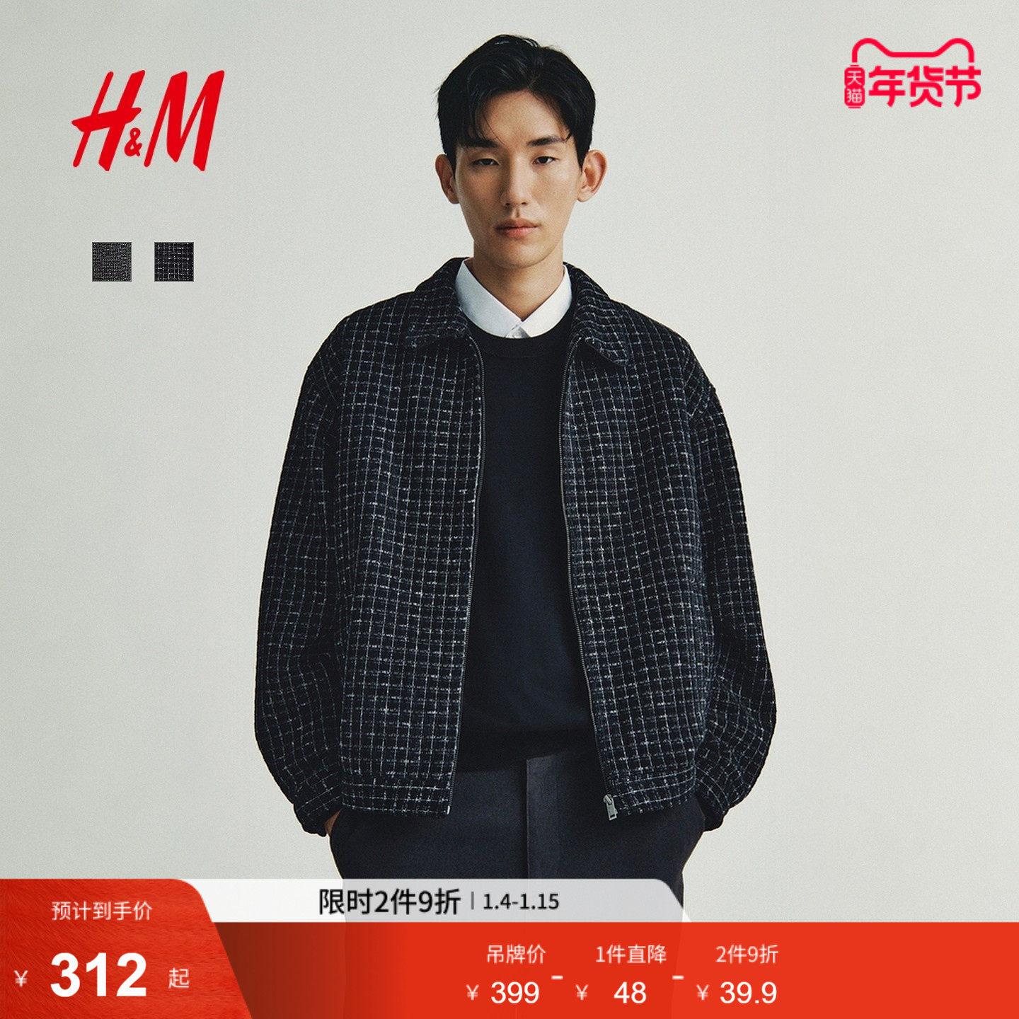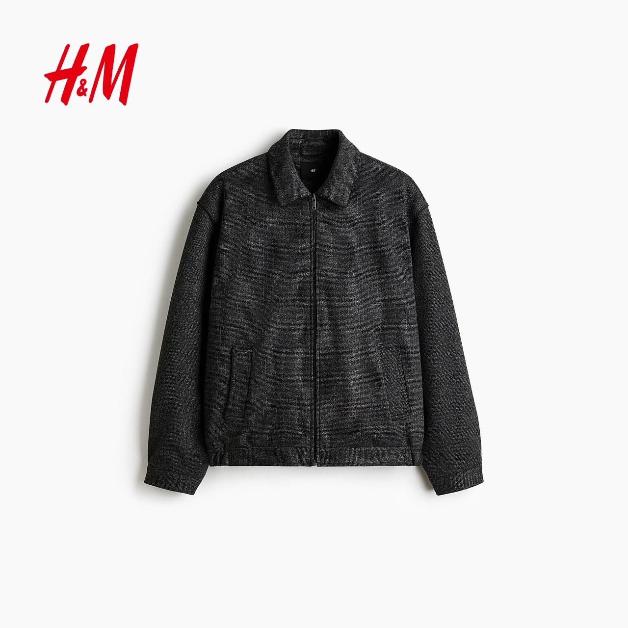 HM男装夹克冬季哈灵顿式冬装保暖翻领格纹外套1300946