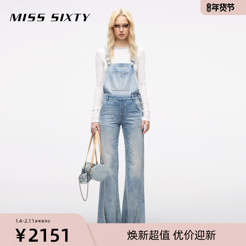 Miss Sixty25春秋新款一体式连衣裤泼点微喇牛仔背带裤设计感