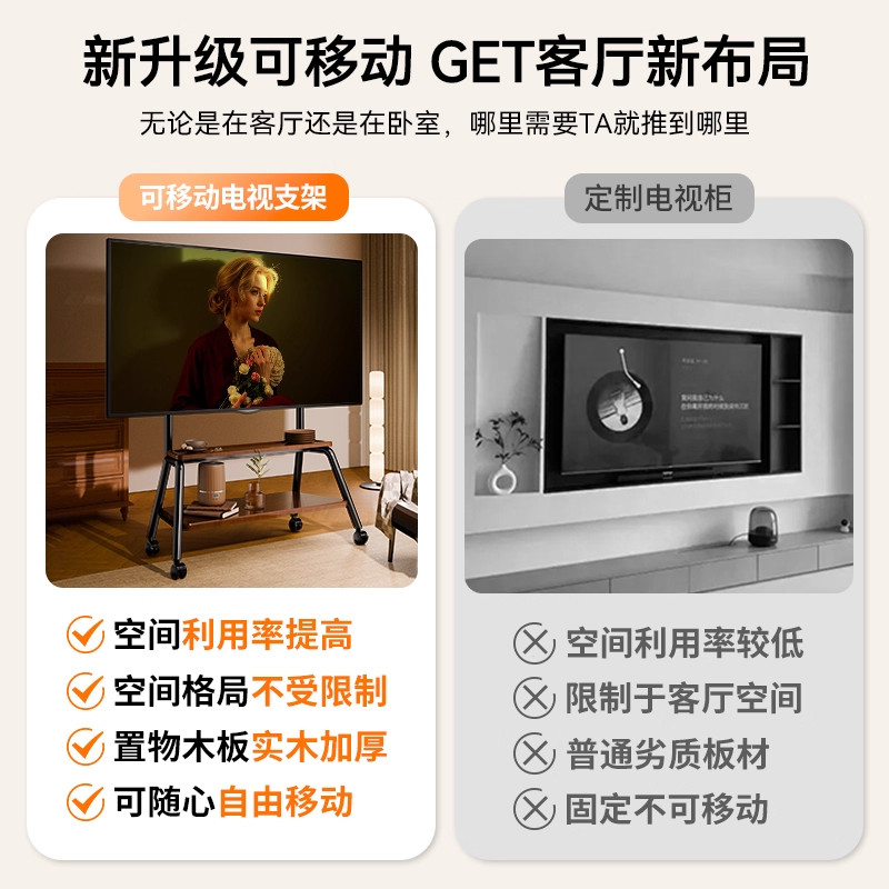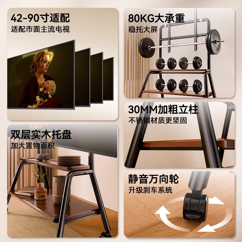 电视机落地支架可移动不锈钢带轮推车55/65/75寸通用挂架电视柜
