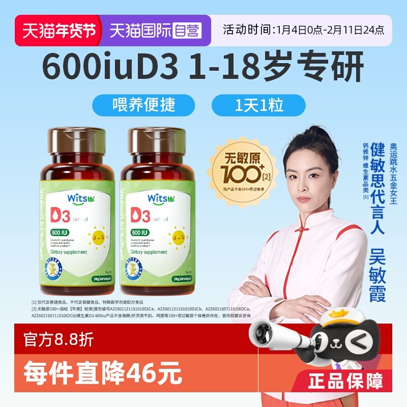 【自营】witsbb健敏思植物维生素d婴幼儿童维生素d3vd600iu60粒*2