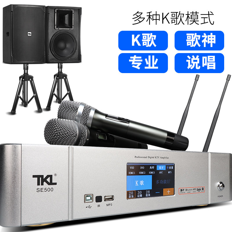 TKL SE500三合一多功能一体机前级效果器功放机大功率专业带无线话筒HIFI家庭KTV音响套装全套家用K歌卡拉ok