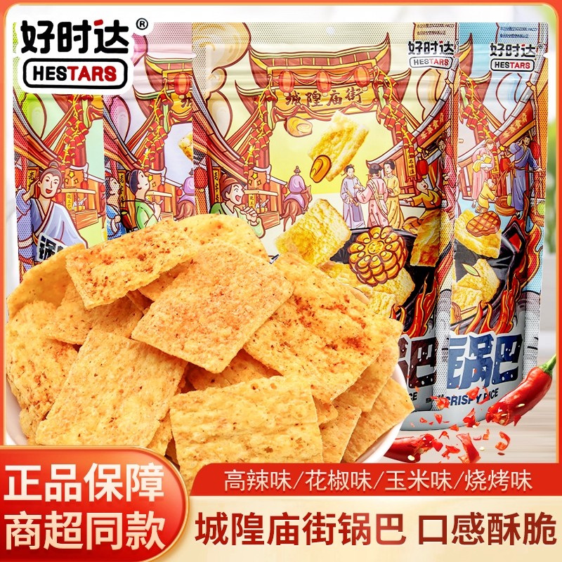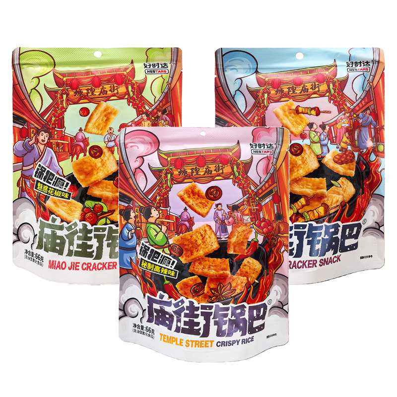好时达庙街锅巴66g袋装花椒味高辣味烧烤味休闲膨化零食解馋小吃