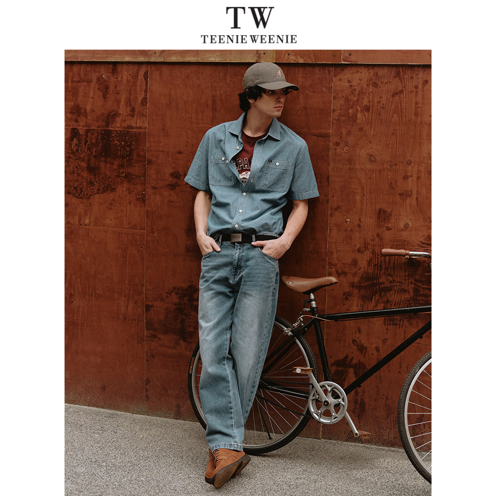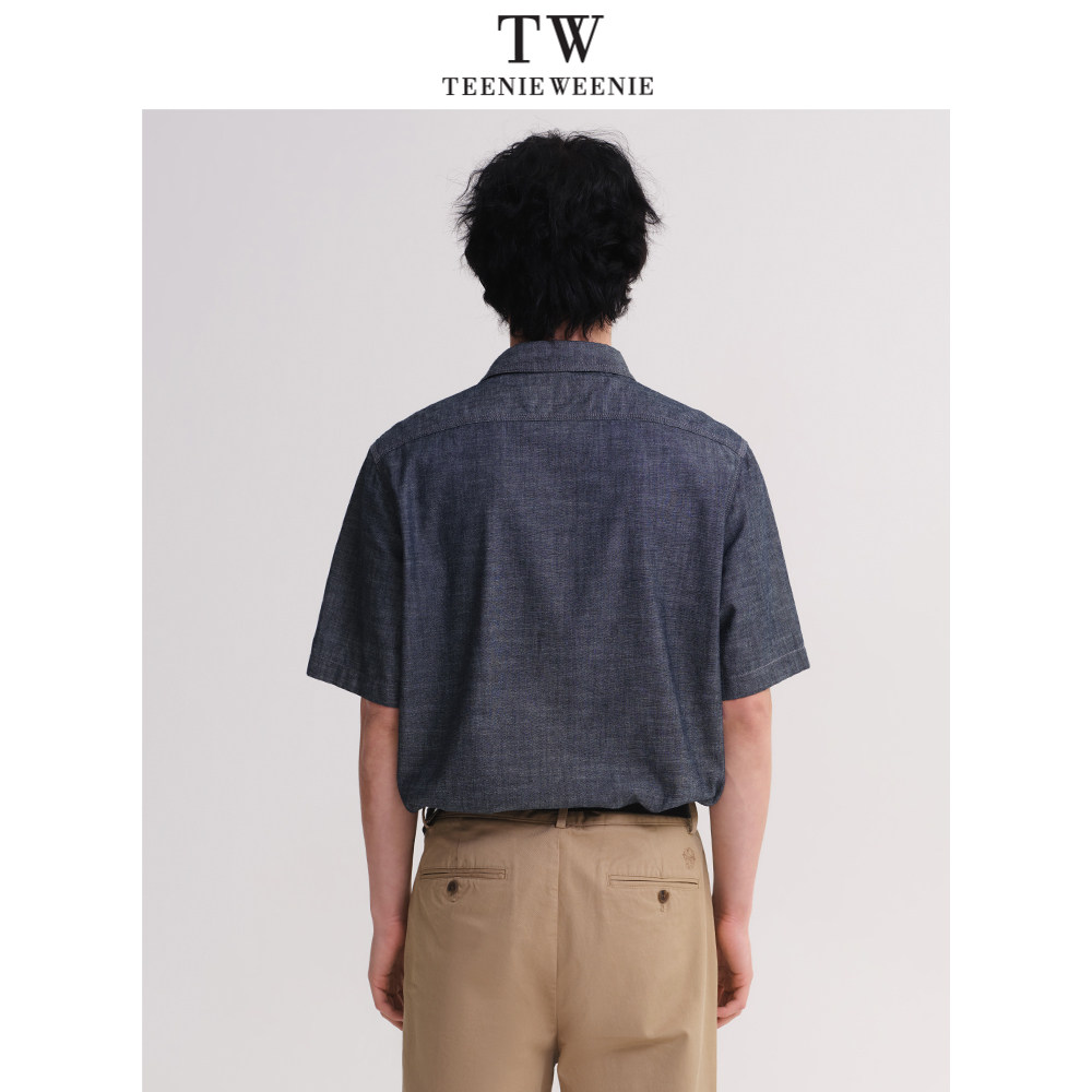 TeenieWeenie小熊男装衬衫2025春夏新款简约翻领休闲通勤短袖衬衣