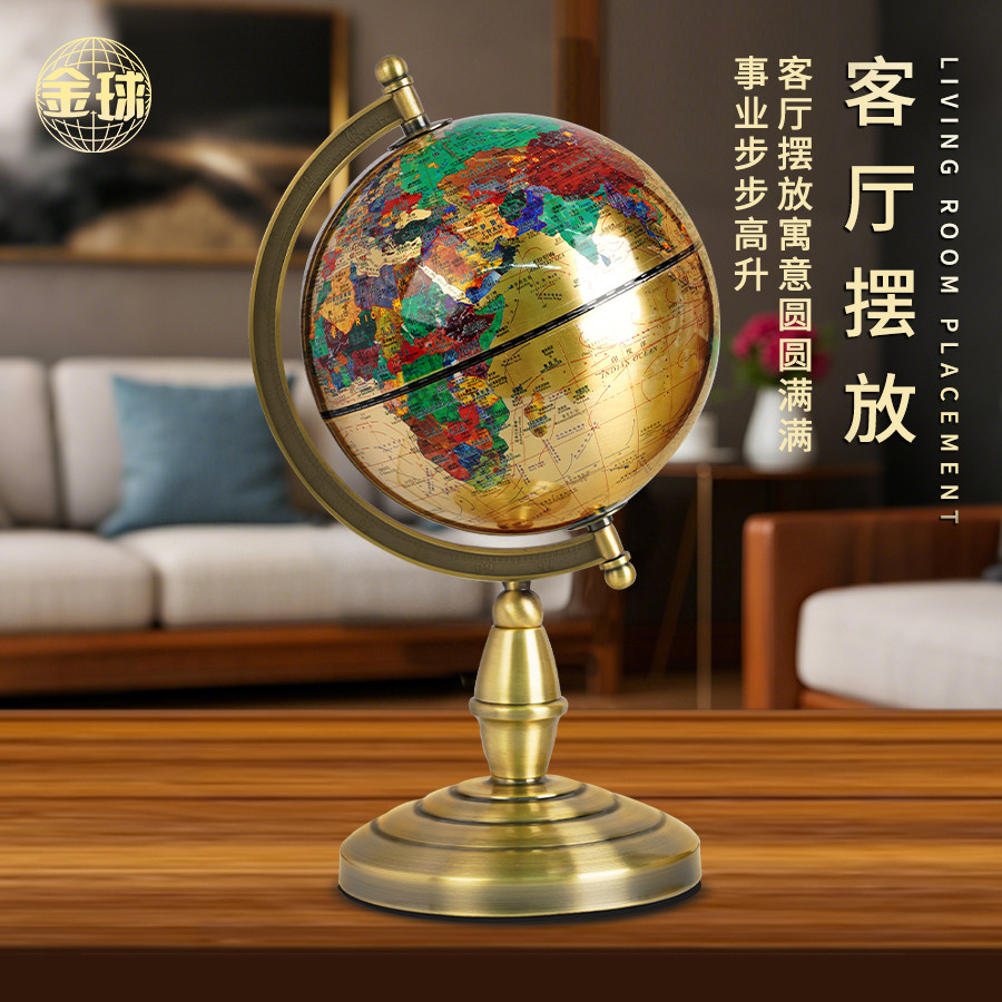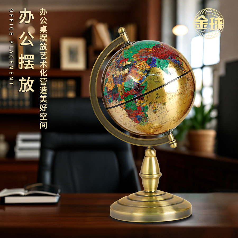 全铜地球仪摆件360°旋转复古怀旧装饰品