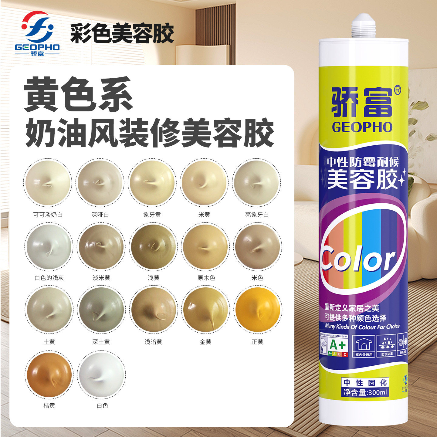 骄富彩色玻璃胶美容胶防水防霉厨卫封边胶踢脚线收边胶硅酮木纹色