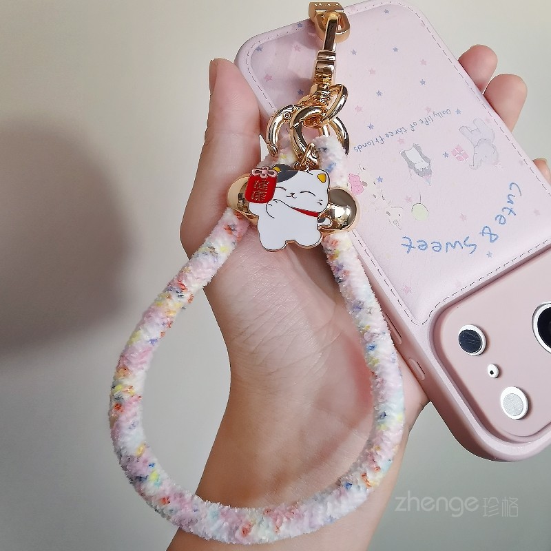 原创新款毛绒手机挂绳女士手腕超好看小众精致高级感五金挂钩扣结实耐用户外旅游出行防丢摔电话套壳挂件链子