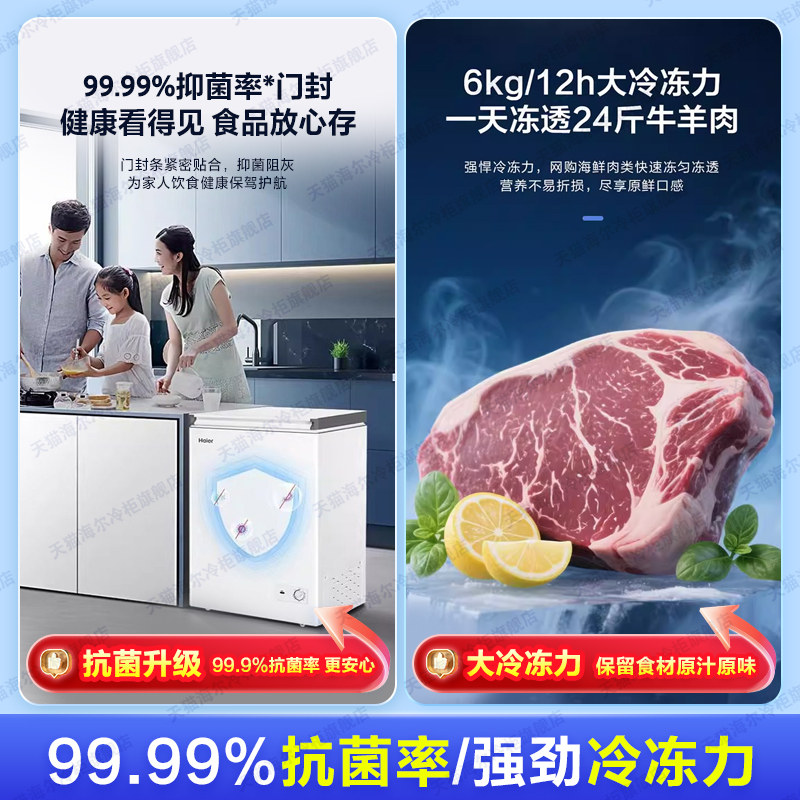 海尔冰柜100/200L家用小型一级商用速冻冷藏冷冻减霜两用冰箱冷柜