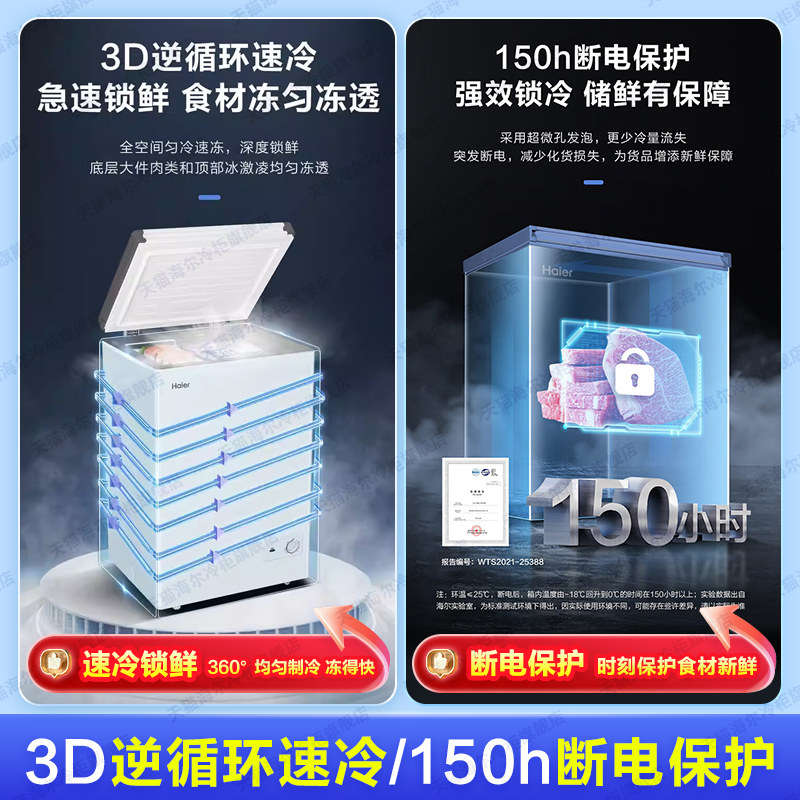 海尔haier100/142/200升冰柜小型家用型冰箱一级冷藏冷冻节能冷柜