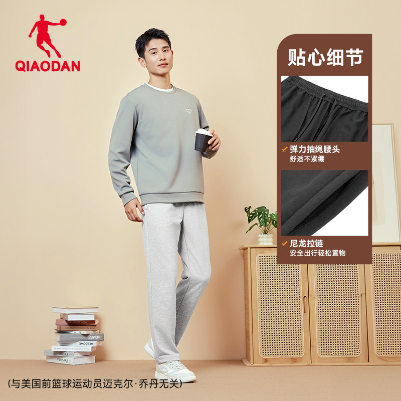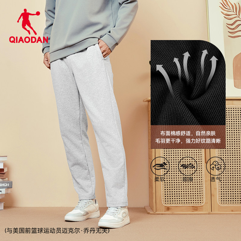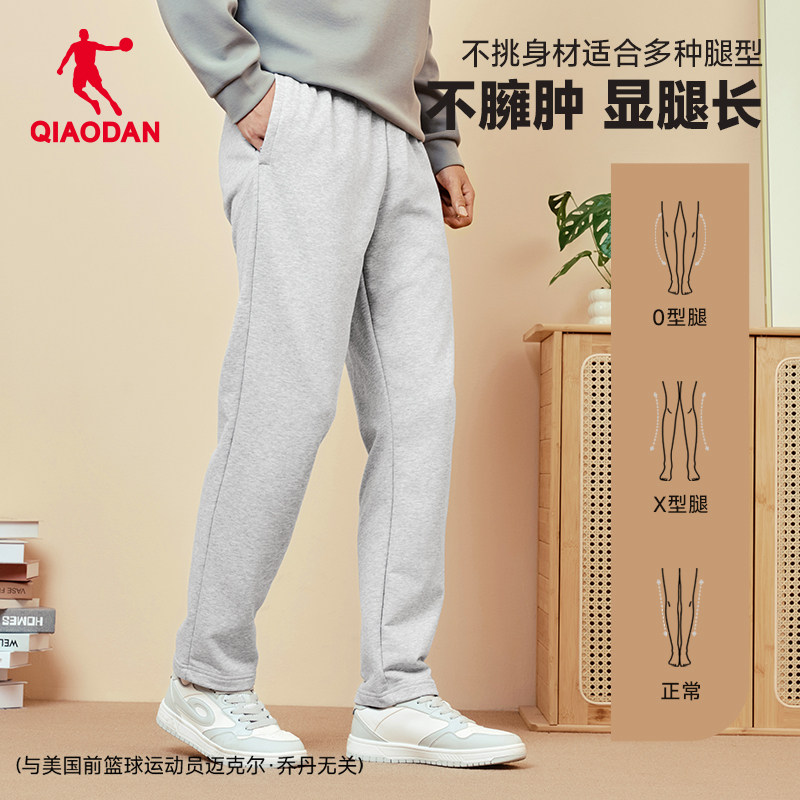 乔丹宽松直筒男裤加绒休闲卫裤2025秋冬季新款大码男士长裤子装灰