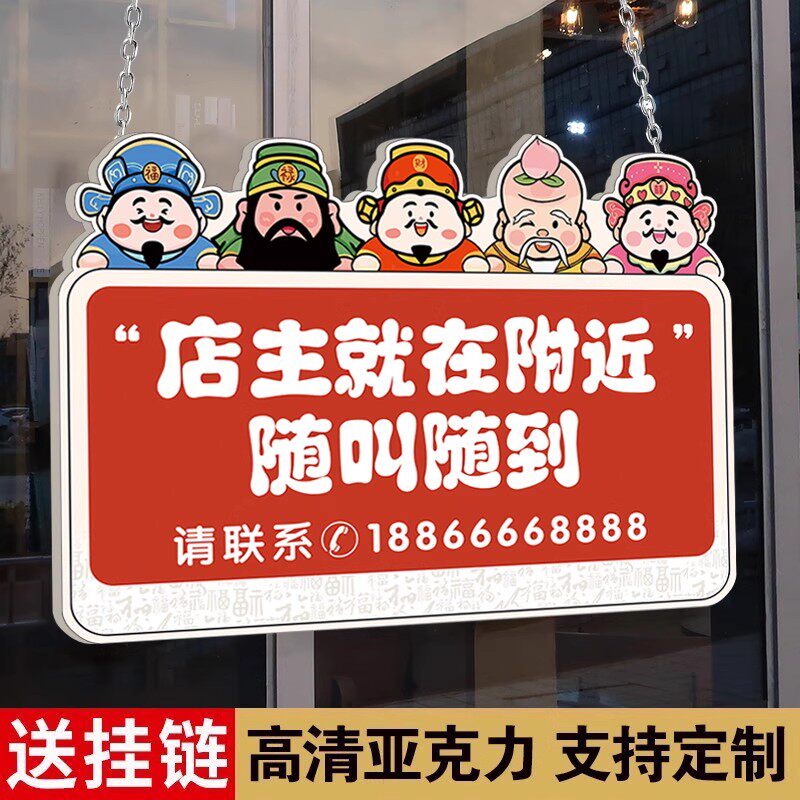 店主外出挂牌有事外出挂牌门牌马上回来提示牌临时拨打电话联系广告牌店铺玻璃门口指示牌告示牌定制欢迎光临