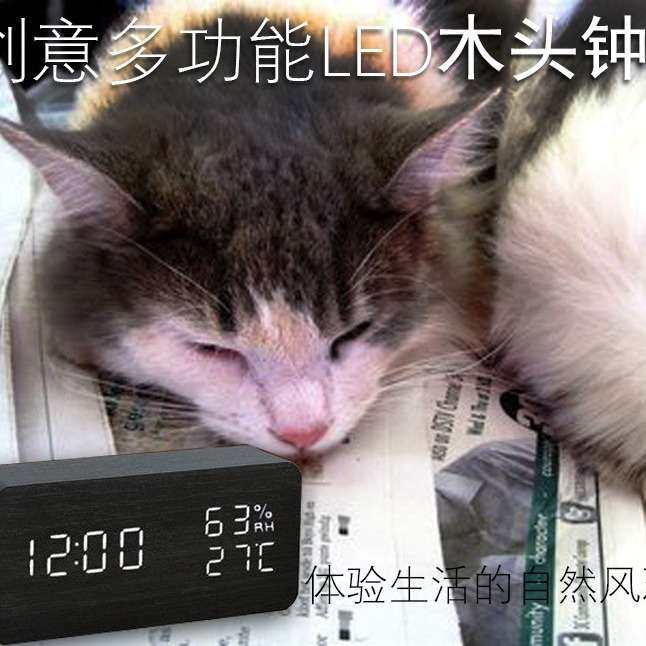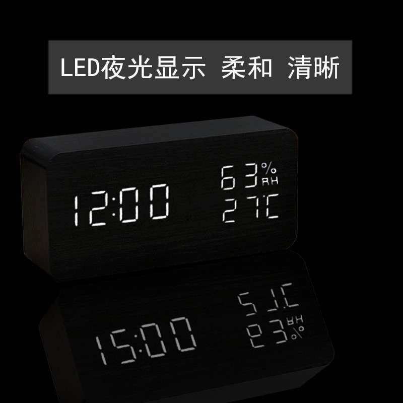 居家木质闹钟创意静音学生夜光电子钟时尚木头钟客厅床头座钟