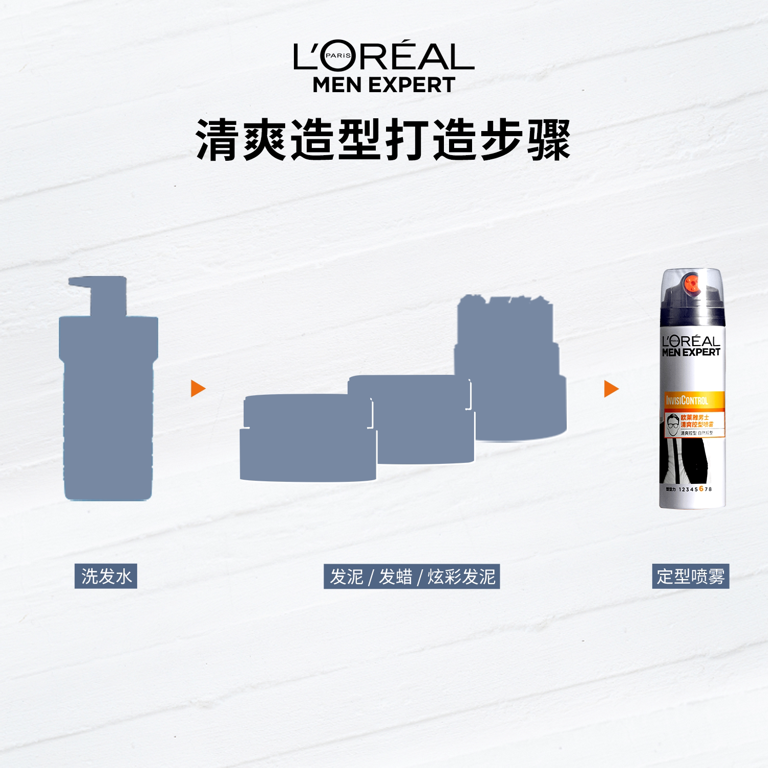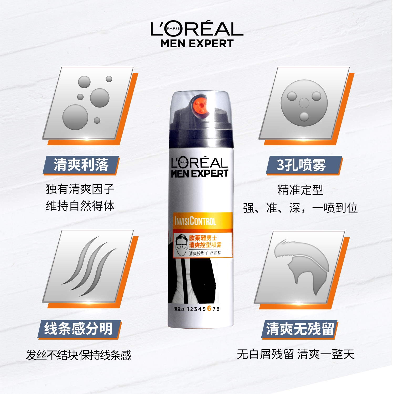 欧莱雅男士清爽定型喷雾自然蓬松造型持久塑型非发胶官方正品