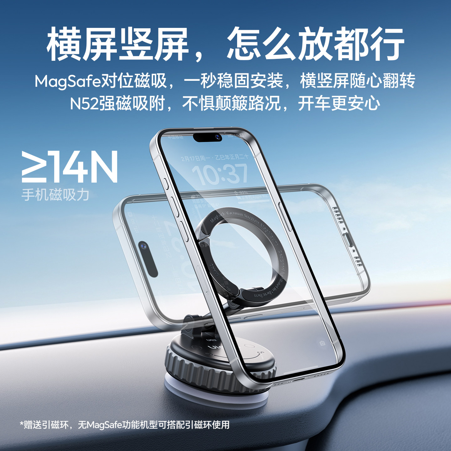 真空吸附磁吸车载手机支架2025新款吸盘车内导航手机架magsafe无线磁吸伸缩折叠便携架子墙壁通用神器