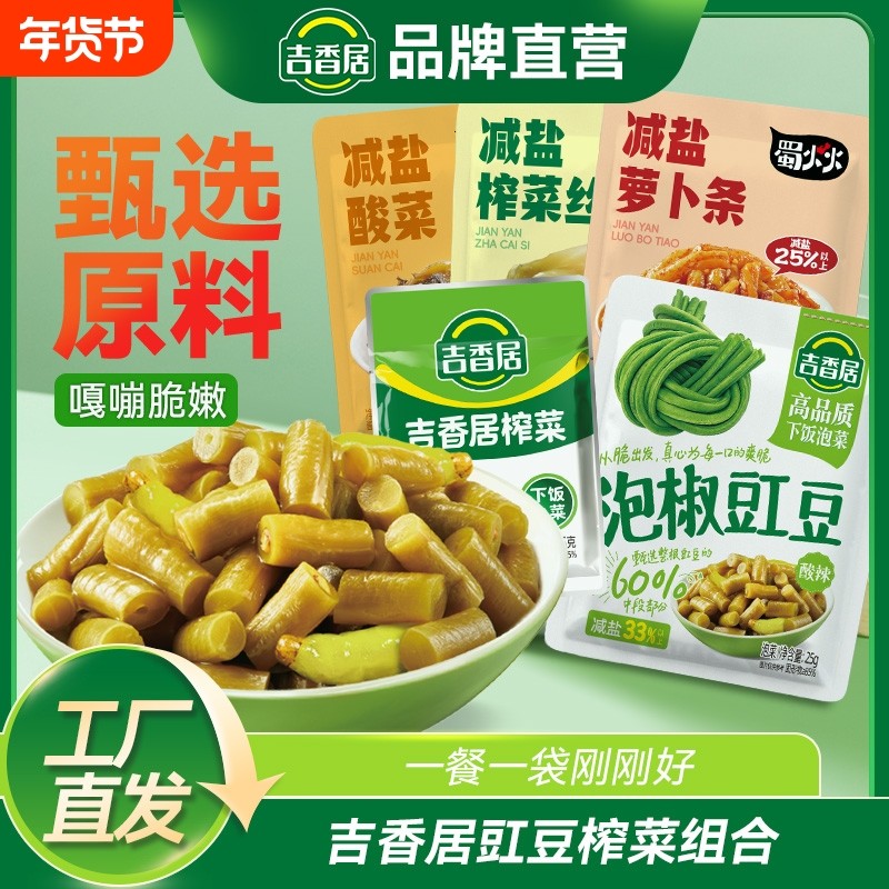 吉香居泡椒豇豆蜀火火减盐榨菜小包装下饭菜开味可口学生榨菜泡菜
