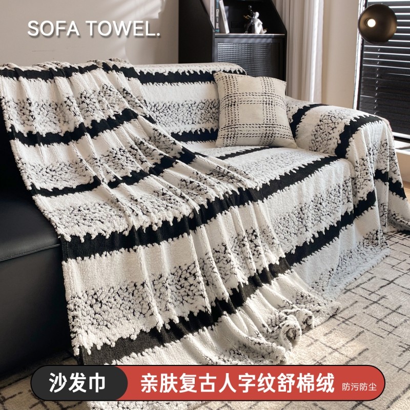 秋冬新款沙发巾一毯多用加厚防尘沙发盖复古风沙发垫沙发套防滑
