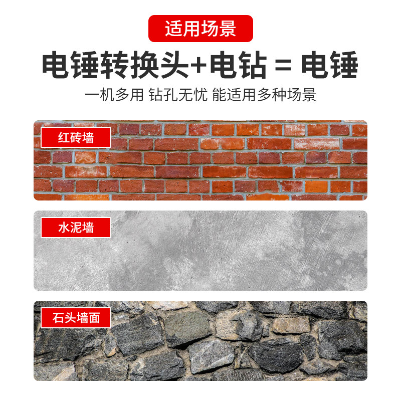 新款电锤转换头电钻改冲击钻打混凝土手电钻转换器合金