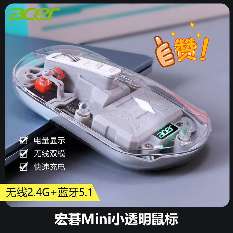acer宏碁透明无线蓝牙鼠标静音手机平板笔记本电脑通用可充电滑鼠
