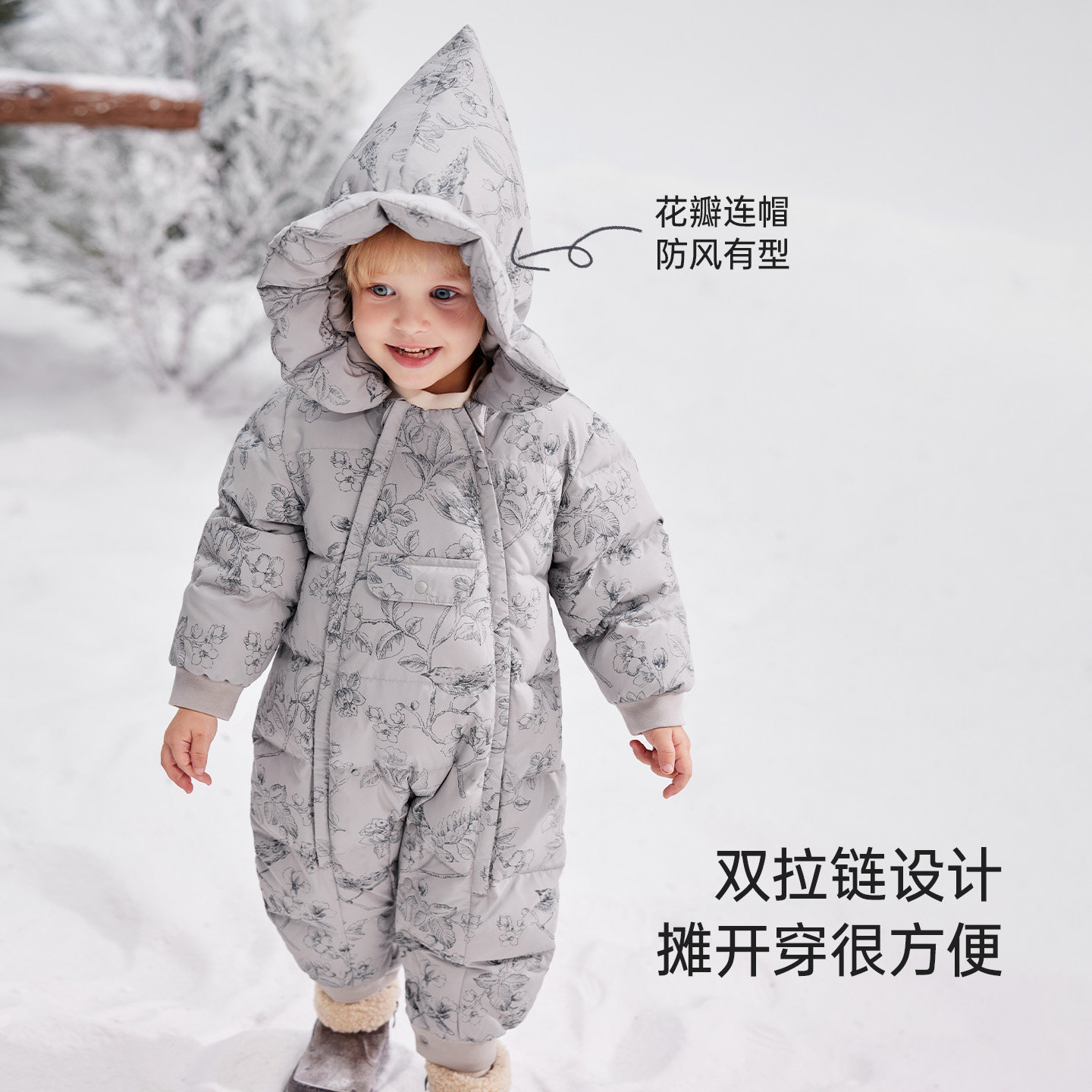 babylove【安心绒】宝宝羽绒连体衣冬季防寒外出哈衣婴儿加厚冬装