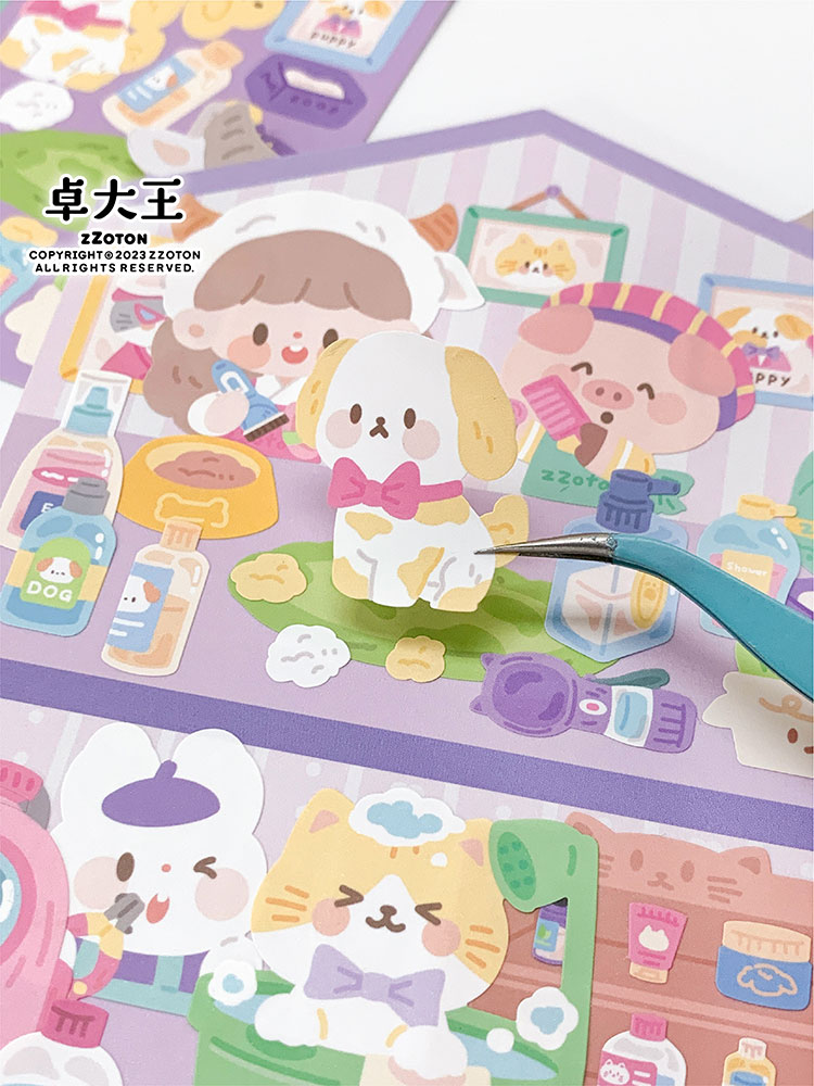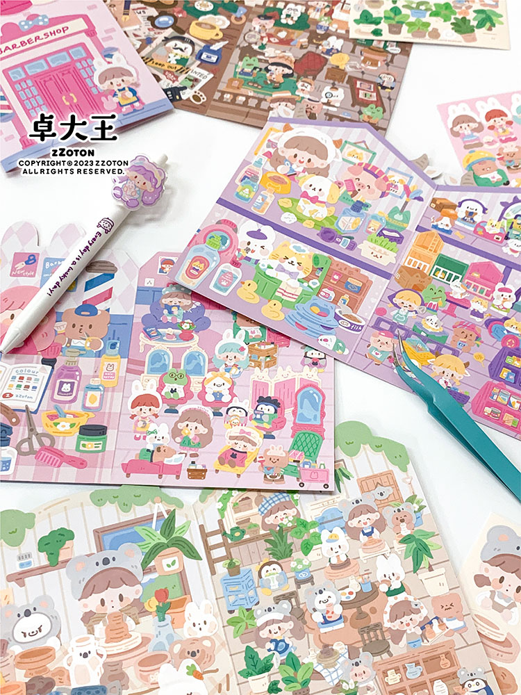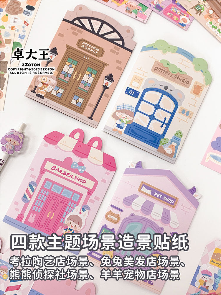 卓大王阿卓可爱小店场景贴纸DIY闪膜咕卡造景无边可爱安静书