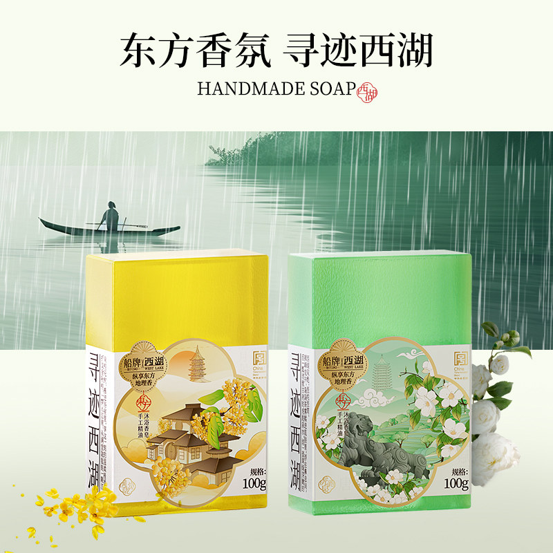 船牌西湖手工精油皂桂花香透明香皂深层洁净洗澡官方正品葡萄皂