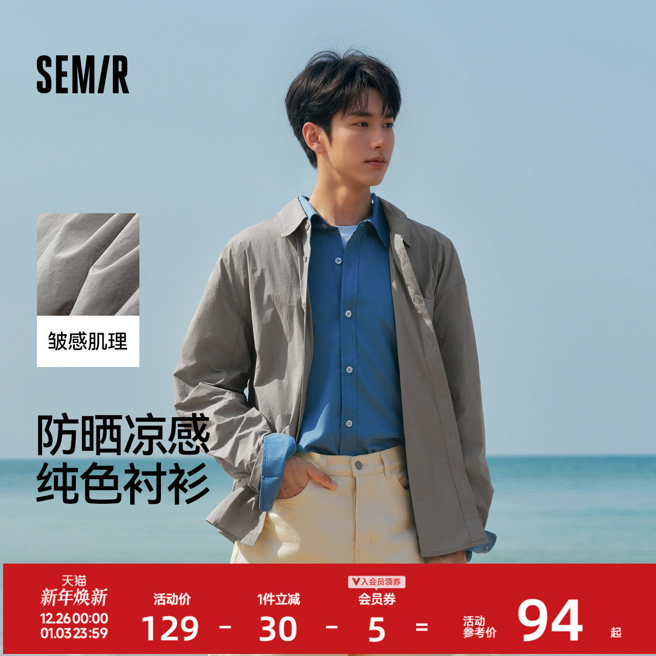 纯色长袖衬衫 防晒凉感 皱感肌理