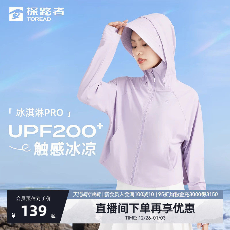 探路者防晒衣女夏季户外运动凉感皮肤衣轻薄透气骑行旅游防晒服
