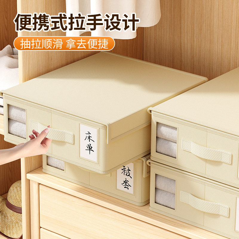 天山棉麻收纳筐衣柜收纳整理分层神器PP板可水洗衣服储物盒收纳箱