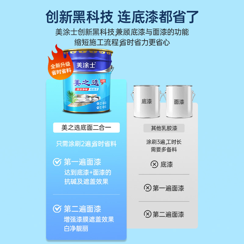 美涂士乳胶漆内墙漆美之选易涂自刷水性油漆室内墙漆白色涂料20KG