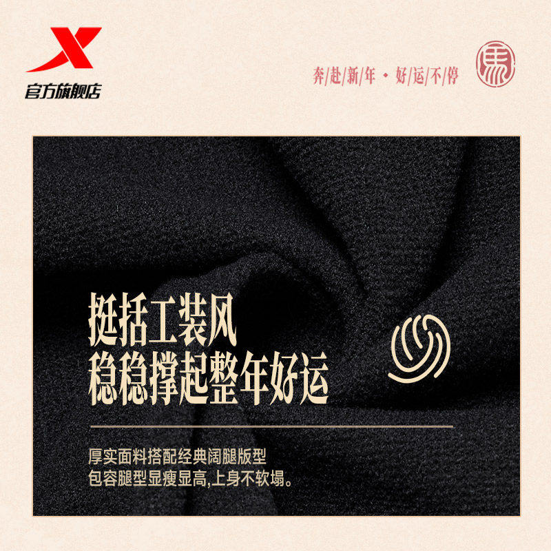 【王鹤棣同款】特步新春系列 | 抓绒工装裤男款运动裤平口休闲裤