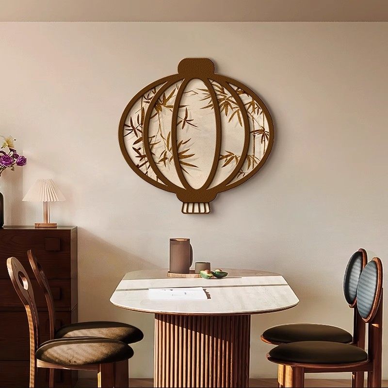 新中式餐厅装饰画饭厅墙面壁画客厅沙发背景墙挂画圆形柿柿如意画