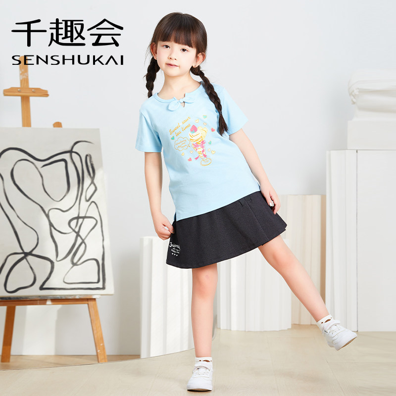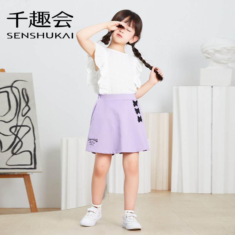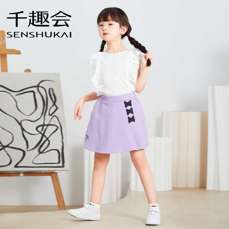 千趣会童装夏款女童针织牛仔面料休闲中裤裙裤