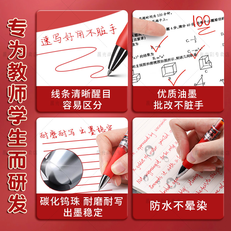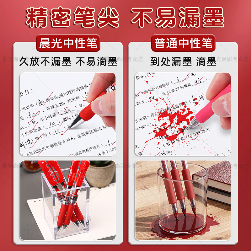 晨光K35红笔学生专用红色中性笔教师老师专用批改作业教师节礼物按动式标记红色水笔高颜值速干子弹头0.5mm