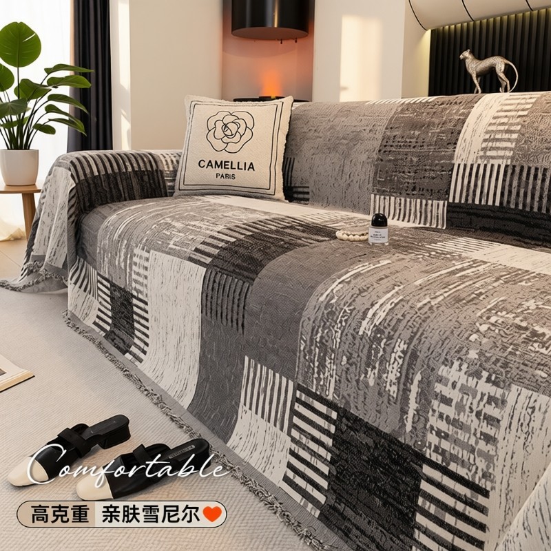 现代简约ins风沙发垫方格耐磨沙发巾万能盖沙发盖防滑氛围客厅