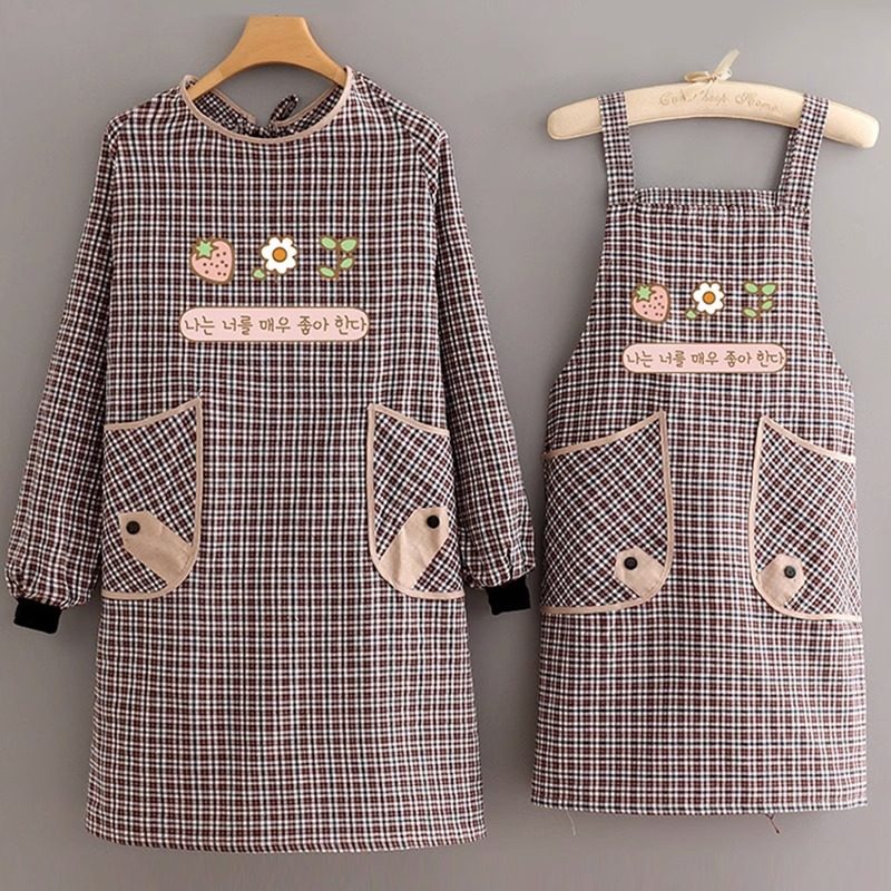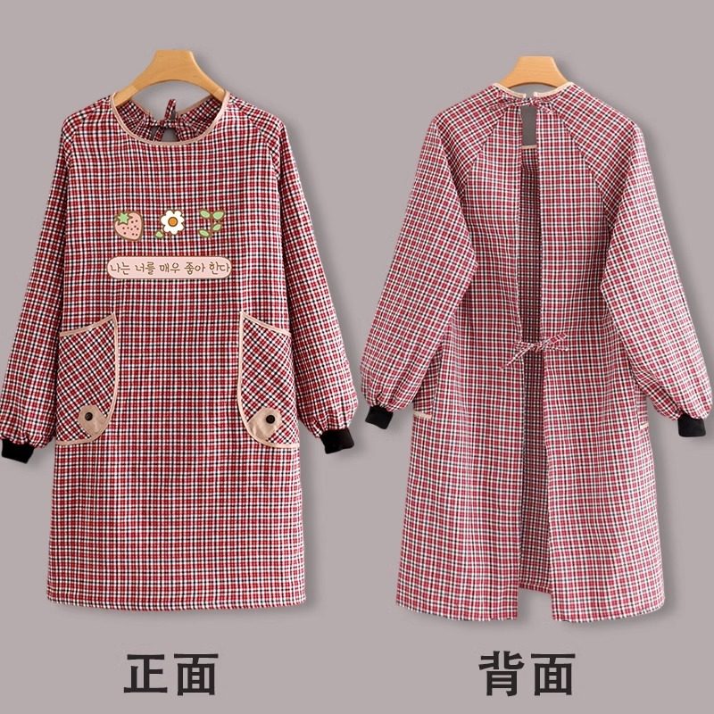 新款棉布耐磨围裙长袖厨房家用防污罩衣透气围腰做饭上班工作服女