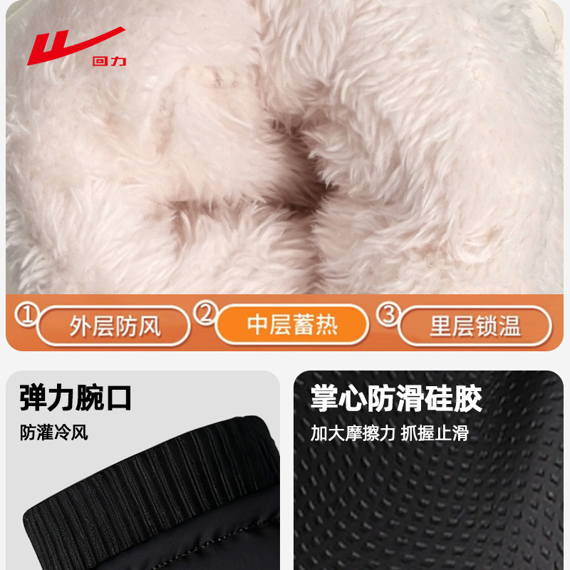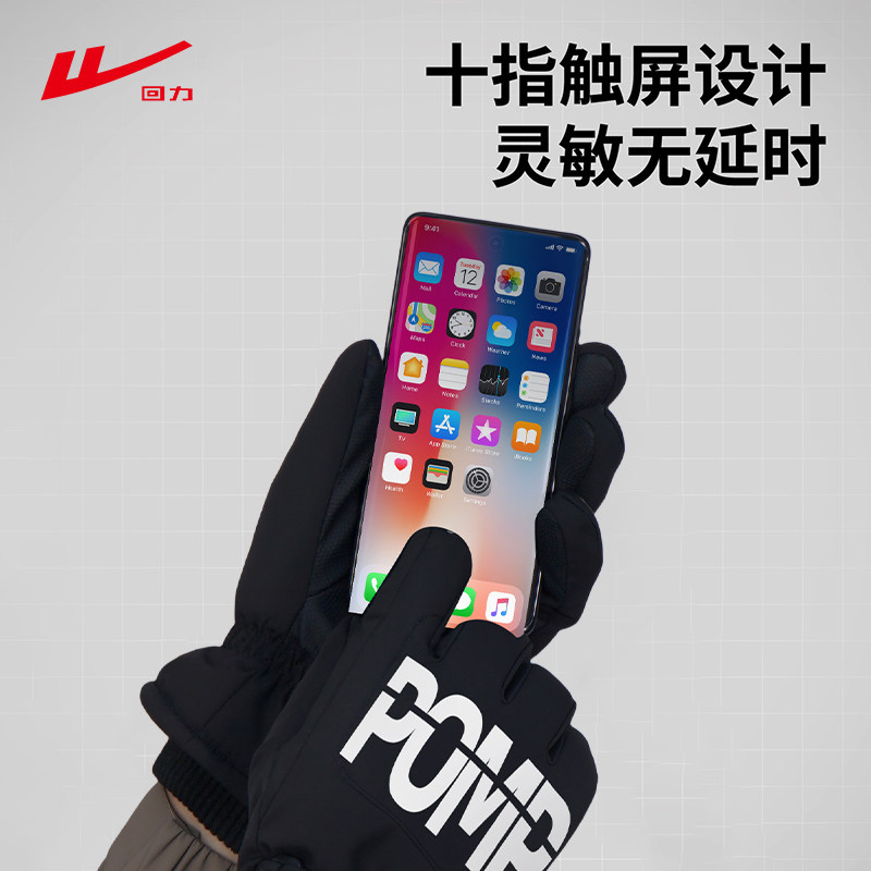 回力手套保暖冬季滑雪加绒加厚男女士骑车摩托车防风防水触屏防滑