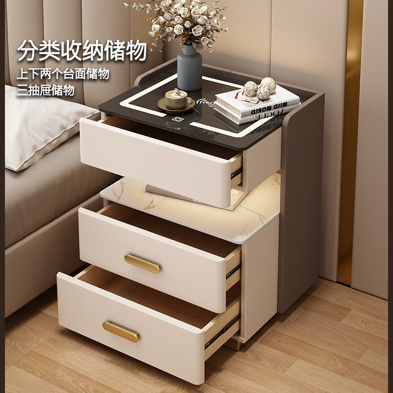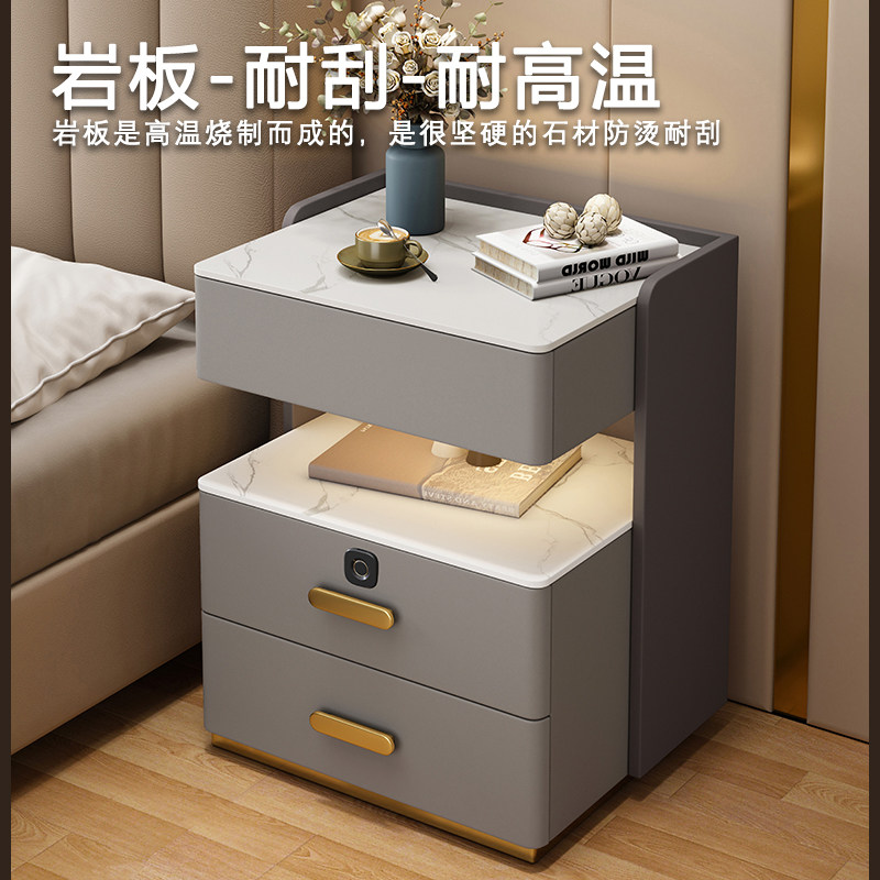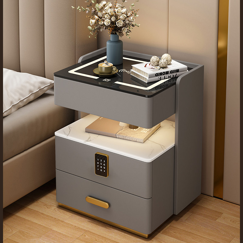 智能床头柜保险箱实木现代免安装卧室充电收纳床边保险柜超窄家居