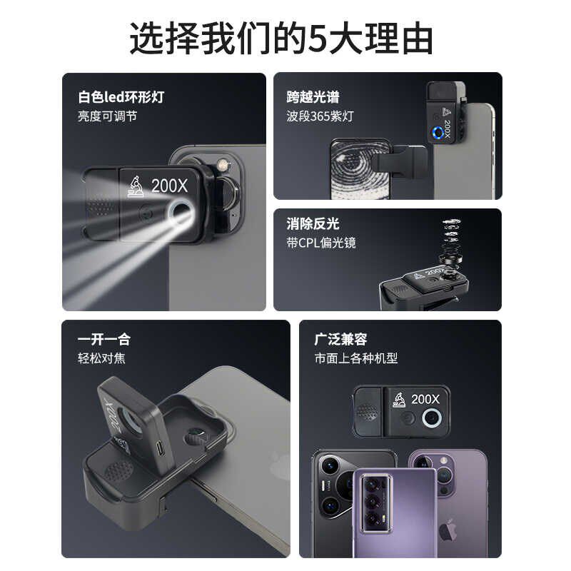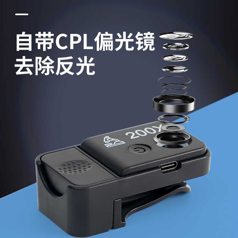 手机放大镜200倍高清带灯显微镜家用玉石文玩珠宝瓷器古董瓷器鉴