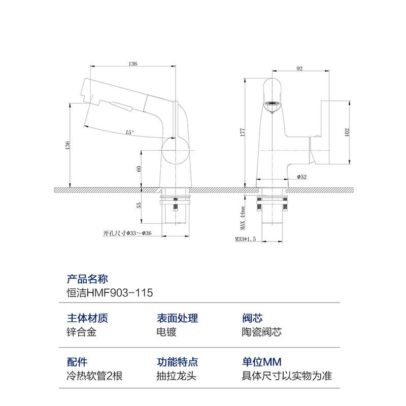 HEGII恒洁龙头卫浴卫生间冷热双控家用面盆抽拉水龙头