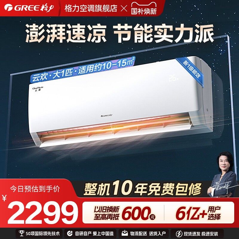 【格力官方正品】冷暖家用小型挂机节能新一级变频空调云欢大1匹