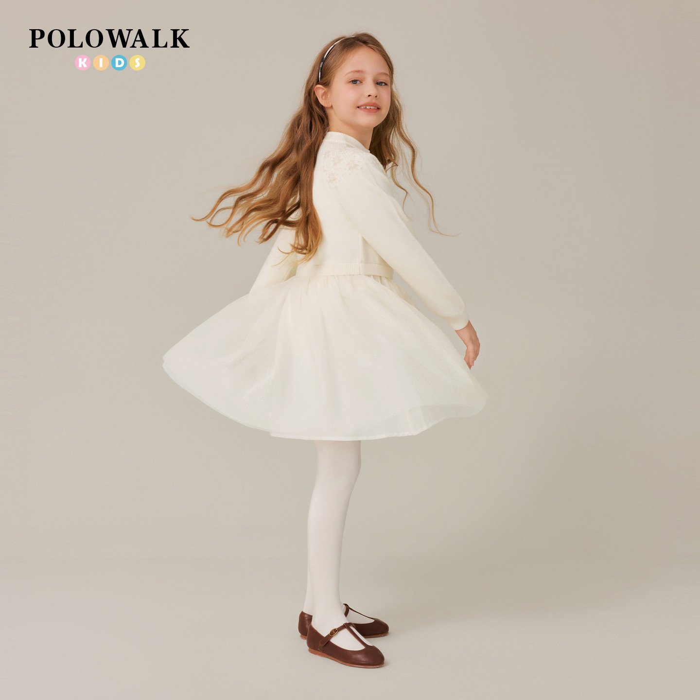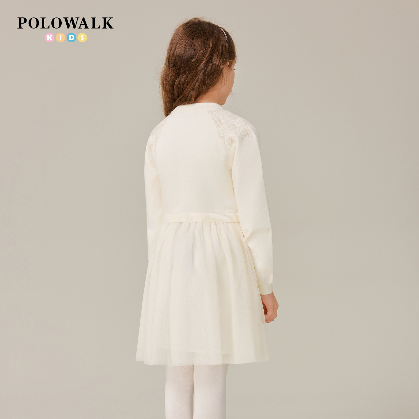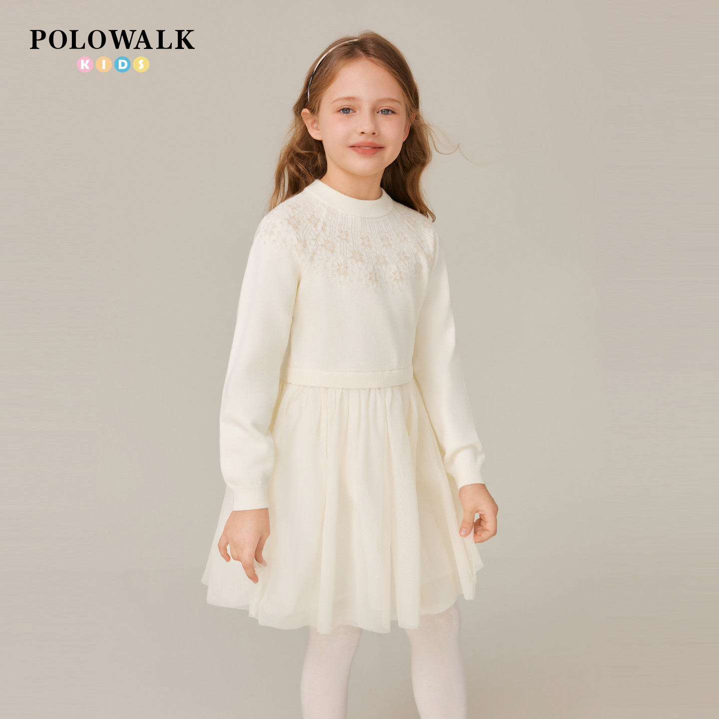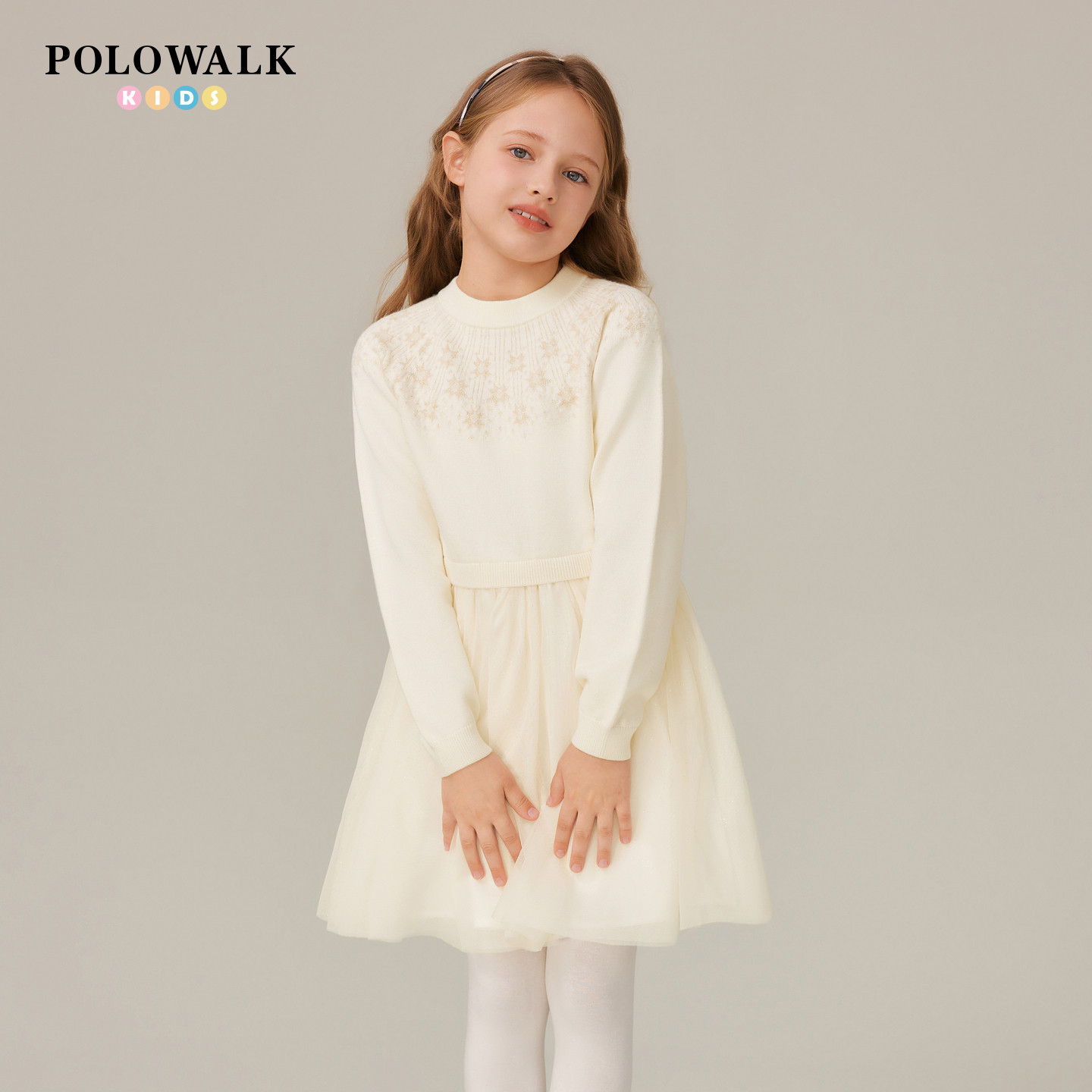 POLOWALK童装女童长袖连衣裙秋冬新款公主裙2025圆领甜美网纱裙子