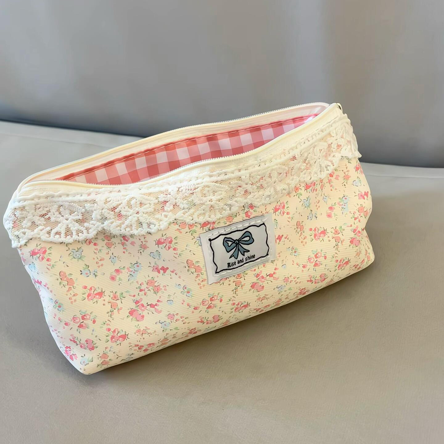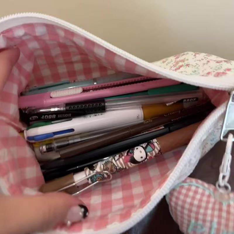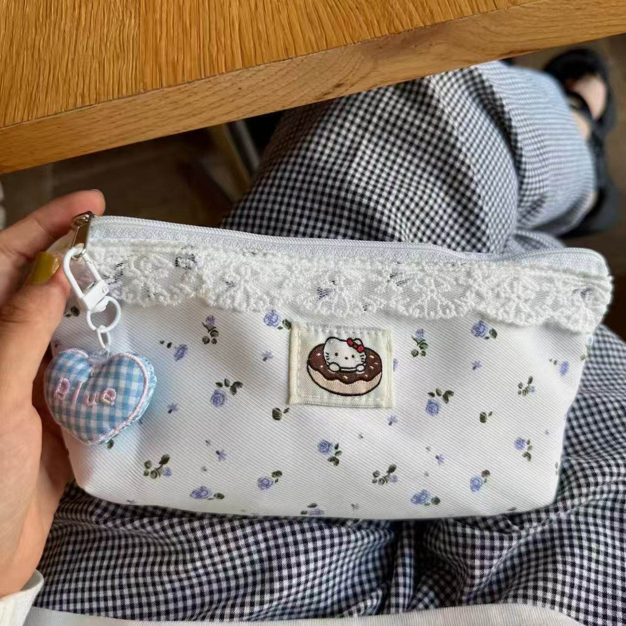 新款小清新蕾丝碎花笔袋高颜值大容量文具盒少女心收纳包初高中生铅笔盒铅笔袋小红书同款文具袋笔盒