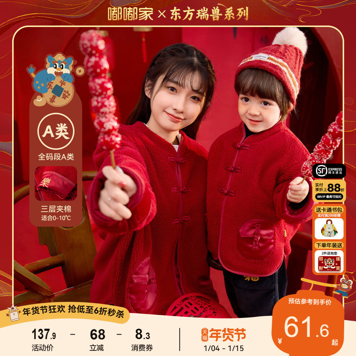 嘟嘟家儿童中式过年唐装宝宝红色喜庆亲子拜年服女童外套宝宝年装