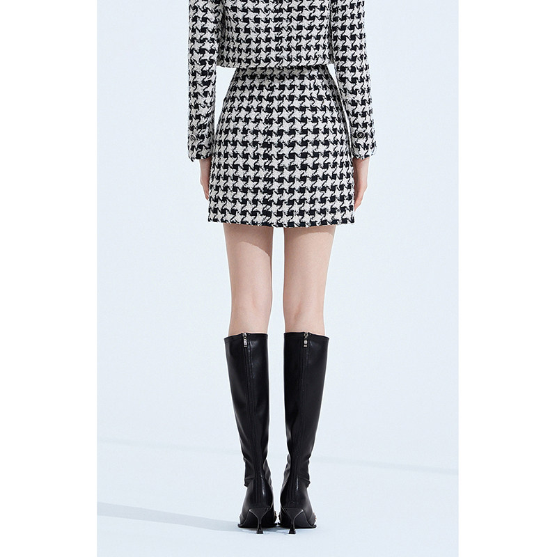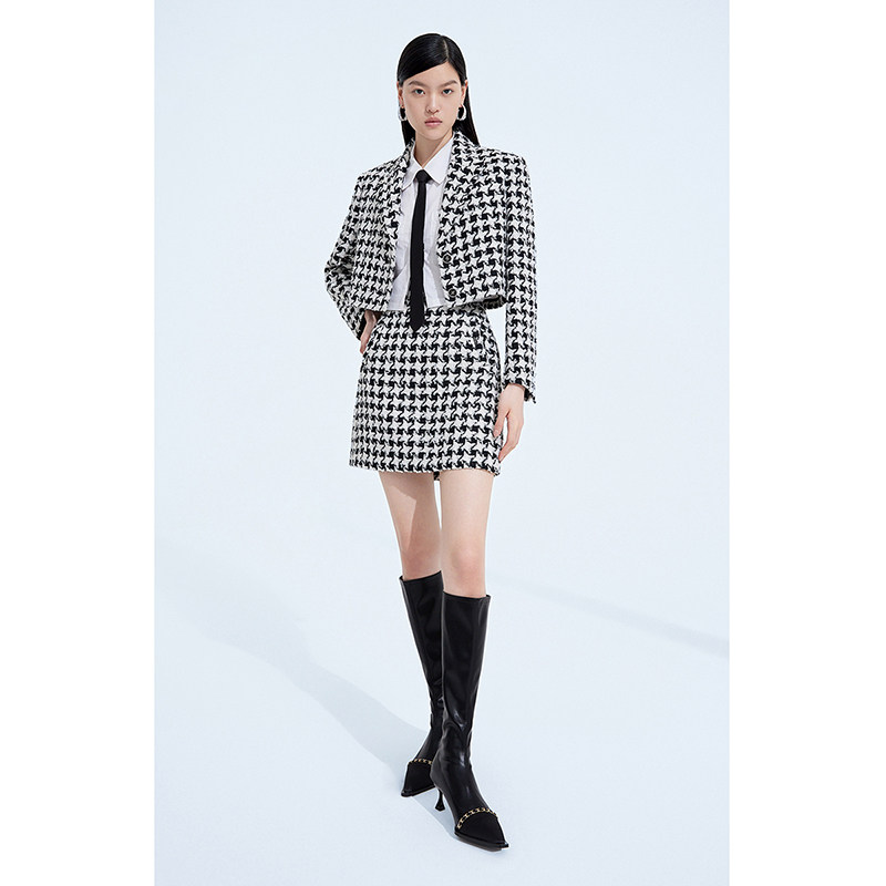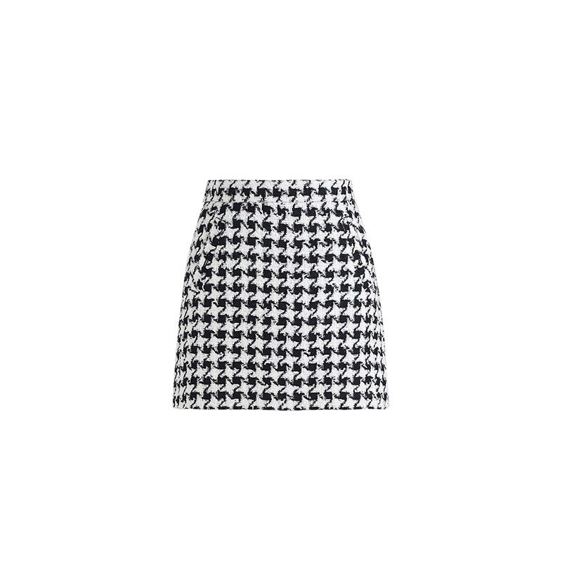 黑标系列 欧时力 千鸟格小香风半身裙2023新款秋装a字短裙复古