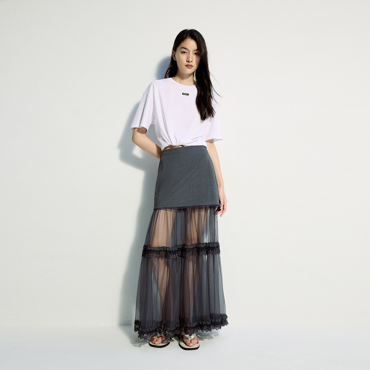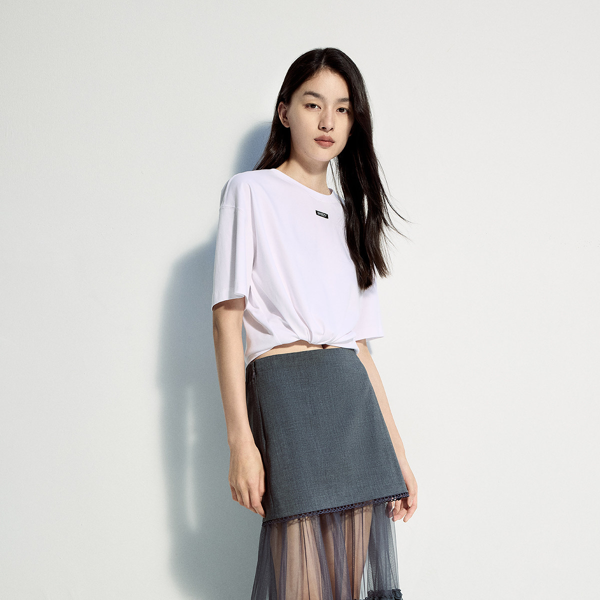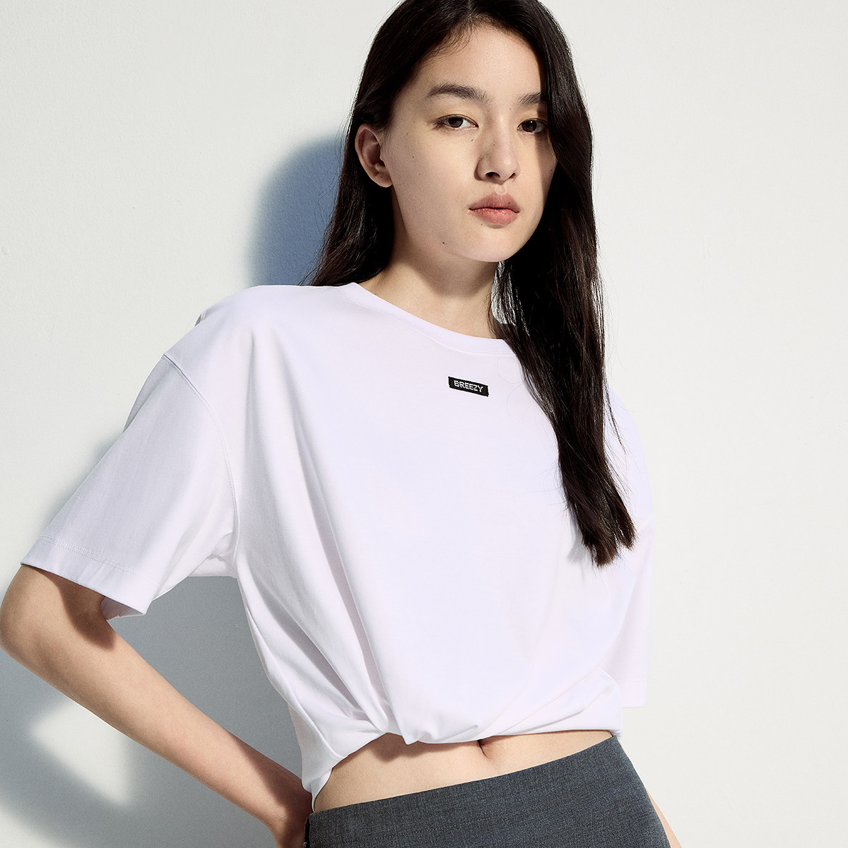 陈都灵丨凉感T森马短袖T恤女修身纯色基础夏季新款圆领白色女装