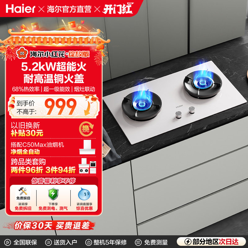 以旧换新补贴 海尔小红花燃气灶天然气煤气灶家用双猛火灶台Q2BEC